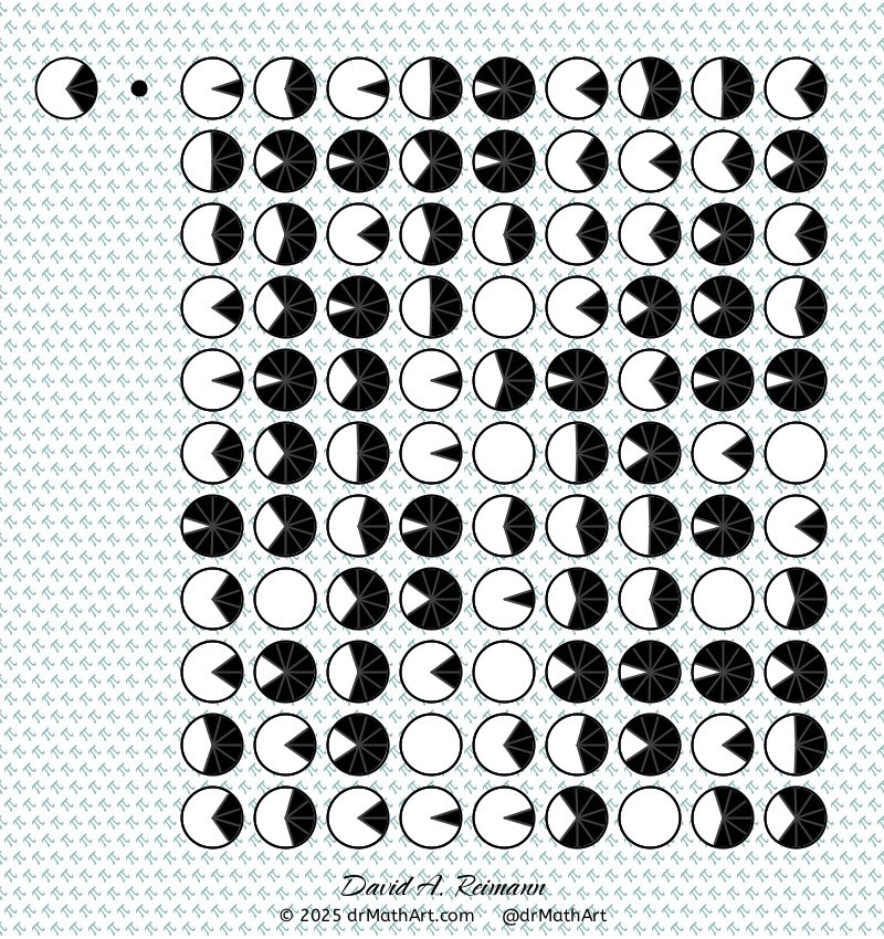 Day 14 – Prompt: Irrationality – Pi day, maybe the most important mathematical day of the year? Lots of wonderful art was created around the prompt of irrationality but my favourite is the best use of pie charts that I have ever seen by David.