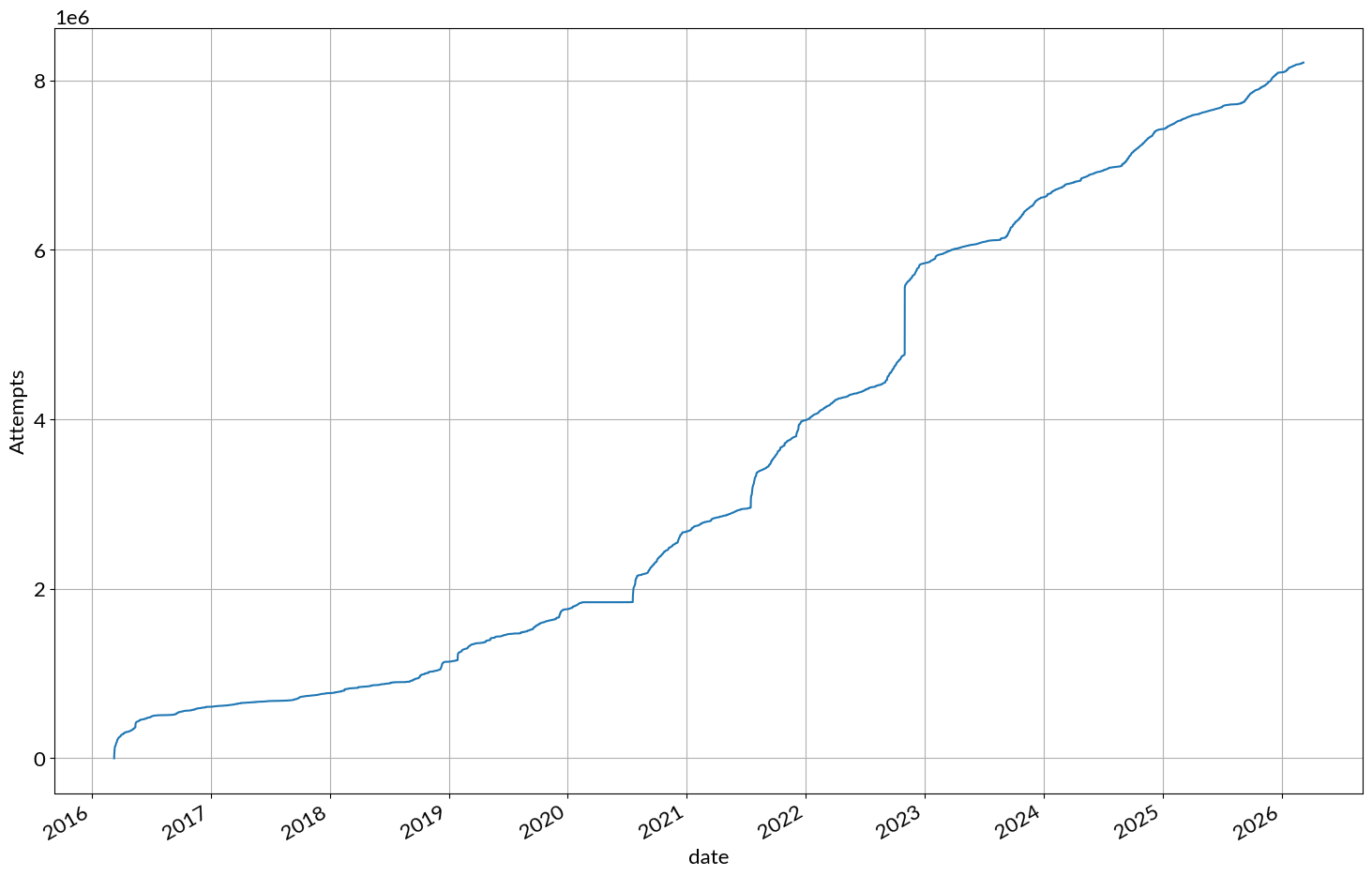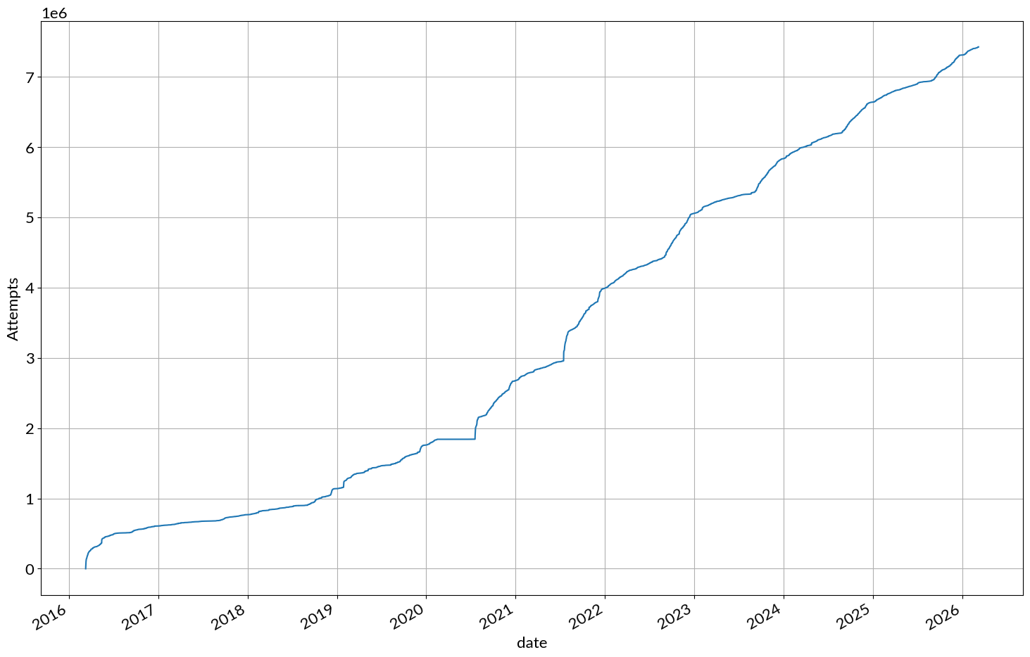(But I have good reasons to believe quite a few of those aren’t real attempts by a human. I’ve removed about 730,000 obviously invalid attempts from the data set, for a reason I’ll explain later.)