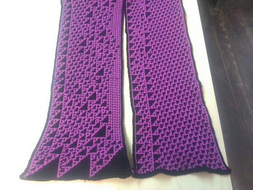 If you remember our post about Fabienne Serrière’s amazing Cellular Automaton Scarves Kickstarter back in 2015, you’ll be pleased to hear Fabienne has now put the patterns, and all the code you need to make your own scarves, online on her Ravelry page. If you have a knitting machine and are prepared to hack it to…