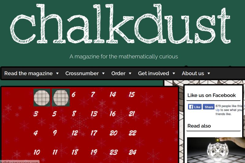 There seem to be a bumper list of mathematical advent calendars this year, even though the stellar efforts of Katie and Christian’s Aperiodvent Calendar 2015 aren’t being repeated. There aren’t yet enough for an advent calendar with a different mathematical advent calendar behind each door, so we thought a straight round up was the way…