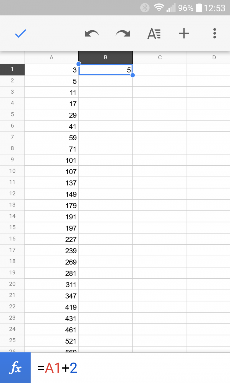 In this series of posts, Katie investigates simple mathematical concepts using the Google Sheets spreadsheet app on her phone. If you have a simple maths trick, pattern or concept you’d like to see illustrated in this series, please get in touch. Having spoken at the MathsJam annual conference in November 2016 about my previous phone spreadsheet…