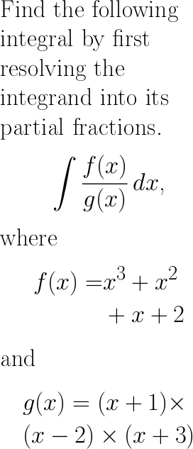 $$ \int \frac{x^3+x^2+x+2}{(x+1)(x-2)(x+3)} \, dx $$