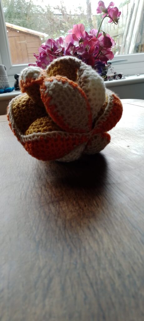 This week, Ayliean, the Fringe’s hardest-working pretend showhand has a question from her mum (hi, Lorna!) – can a shape be a shape if it’s really three shapes? What we’ve got here are three quornettos – each made of four cones joined together at the base in a loop. The three of them then fit together in a very pleasing way to form a triquornetto that my autistic fingers are LONGING to turn inside out over and over for hours. Ayliean suspects they’re linked to the flexagon family – this I know from nothing, but I wonder if any loyal readers can help?